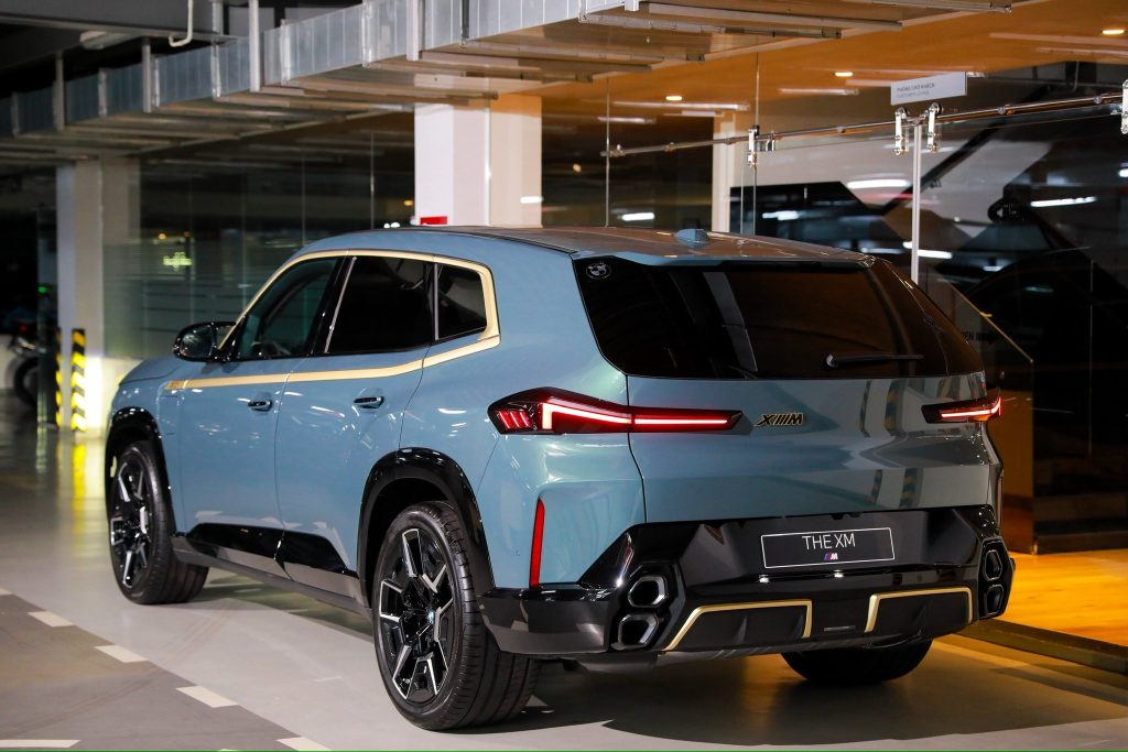 Đặc biệt, BMW XM được trang bị kính cửa sổ phía sau ốp tràn viền với logo thương hiệu BMW được in trực tiếp lên mặt kính kết hợp với mâm hợp kim nhẹ 22 inch, ốp vòm bánh xe thể thao màu đen bóng độc đáo cùng các đường gấp khúc tạo cho tổng thể đuôi xe thêm to lớn và bệ vệ.